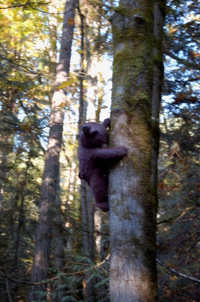 In the absence of abundance, I look for things to note, as if I were in a museum where the major exhibition is closed, and so I take time to view a few treasures I had ignored on other visits.  Last week, a wooded walk on Hood Canal revealed a giant stuffed bear attached to a tree. This morning, it is the angle of the sun on my neighbor’s door.  Although the solstice has passed, and each day may be a bit longer, it is as if the sun barely creeps over the horizon, casting long shadows even at 11:00 AM.  Today the light captured my neighbor’s front door where a Christmas wreath still hangs, a deep black-green circle with a velvet red bow.  Shadows from surrounding leafless trees dance around the wreath.