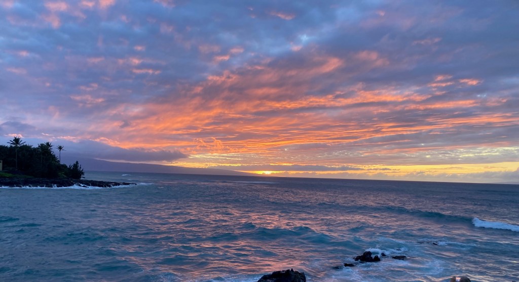 Mornings, before the sun is too hot, I set out for a long walk along the Honoapiilani Road –north one day, south the other. Some mornings I am kept company by an audible book, and this, trip against a backdrop of crashing waves, I am listening to The Power of Wonder by Monica C. Parker.  In the book, she sites social scientists and medical experts to define Wonder and then argues how living with Wonder one’s life is not only enriched but extended. Having recently passed my 80th birthday, I can’t think of a better time of life to visit what space I have for Wonder.  Is there anything new under the sun?  Does a Taylor Swift concert make me drop my jaw in amazement?  I had a Presley, then Beetles youth – Elvis held my hand when I was thirteen.  I have “been there / done that.”  Nonetheless I too want to experience Wonder and foster the habits that might refresh Awe, if not in something brand new, then in experiences renewed.