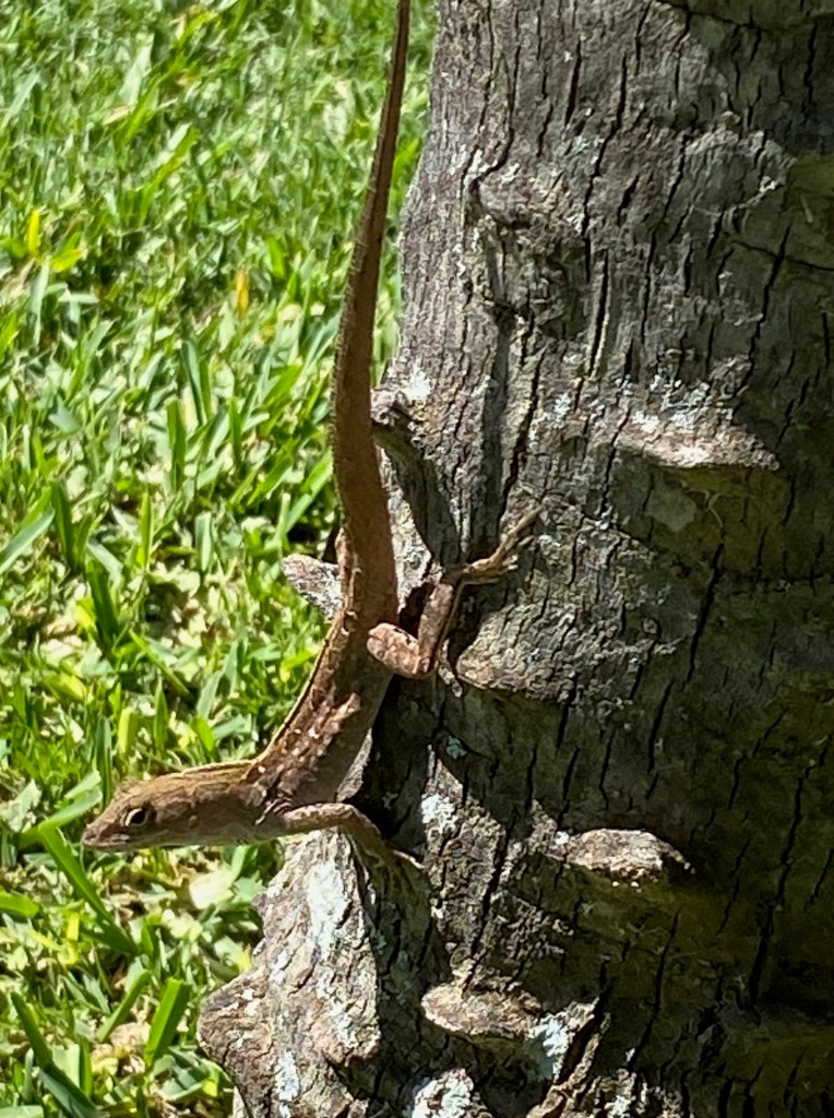 Wonder, awe, surprise, amazement are often used interchangeably, but what they have in common is a felt experience not expected, an experience that stops our quotidian existence to express, “Whoa. What’s That?”  It is a pause that can be minute or monumental, a comma or stanza break in our narrative. Here are my Awe-some moments of recent Maui days.  There is that beautiful sunset – every day so far. Coming from cold, rainy Seattle, how can I not Wonder at such beauty?  Looking up from my beach book this morning, I spot a companion — a slender arched gecko poised as a sculpture on the tree trunk beside me. It surprised me, and I tingled with glee as I pulled out my cell phone to capture its pose.