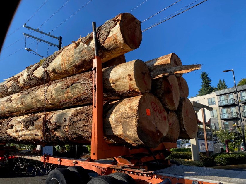 On the way back to Seattle Monday morning, three gigantic logging trucks rolled on to the ferry ahead of us.  Their beds were piled with logs about five feet in diameter and perhaps fifty feet or more in length.  These were not the usual harvest of tree farms.  Rather they looked like the established trees from the National Olympic Forest.  I recall Donald Trump’s call for opening-up national forests to loggers.  I can imagine what birds and animals would say in response. But what about the trees?  Is any politician listening to the pines?